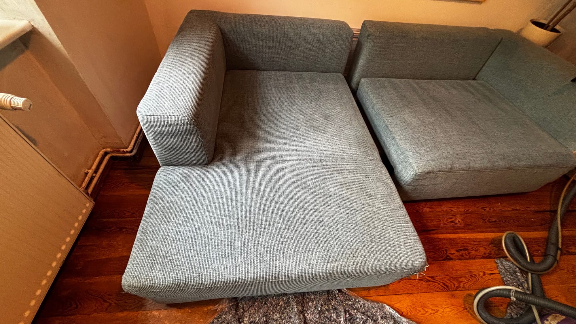 Sehen Sie den deutlichen Unterschied unserer professionellen Polsterreinigung: Couch Vorher-Nachher Vergleich mit realen Ergebnissen. Tiefenreinigung, Fleckenentfernung & hygienische Frische.